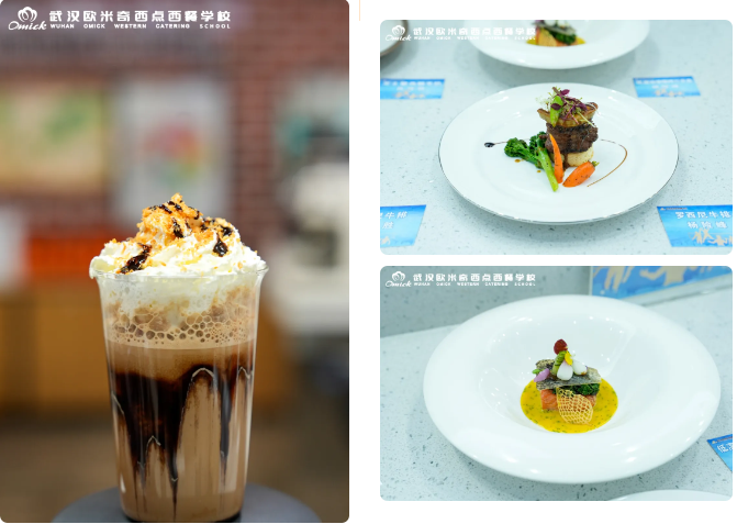 比赛开始,全校西点、西餐、咖啡、调酒教师依据专业领域分组,展开紧张有序的产品制作。