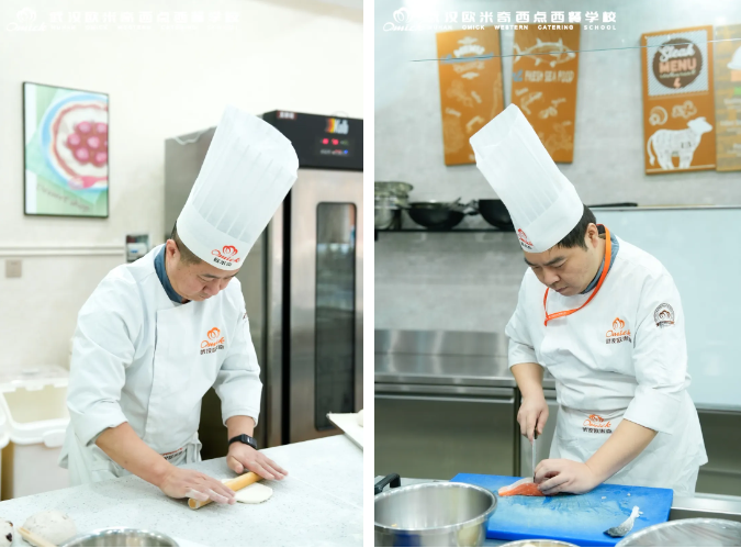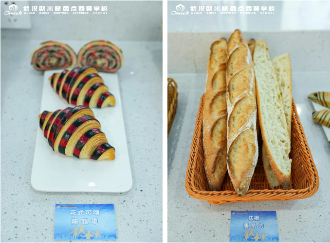 面包组揉捏面团力道均匀,法棍割纹精准,丹麦、欧包层次分明、香气弥漫,诠释着对面团特性的深刻理解。