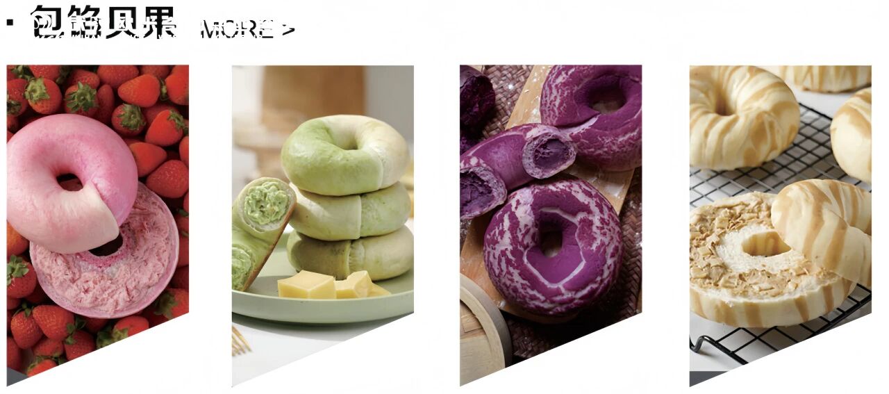 以贝果、三明治、软欧等面包为主打,辅助生产牛角包、冰面包、月饼等。提供冷鲜和冷冻的成品交付方案,门店无需操作间、解冻复烤出餐;家庭客户无需烤箱、拆袋即食,还原鲜食面包味道。