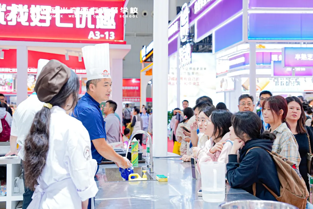 展位俨然化身为生动的移动课堂与创意孵化器。学员身着统一制服,在操作台前沉稳有序地进行面团整形、烘烤、装饰,将课堂所学转化为色香味俱全的产品,吸引了大量观众驻足观摩、拍照。